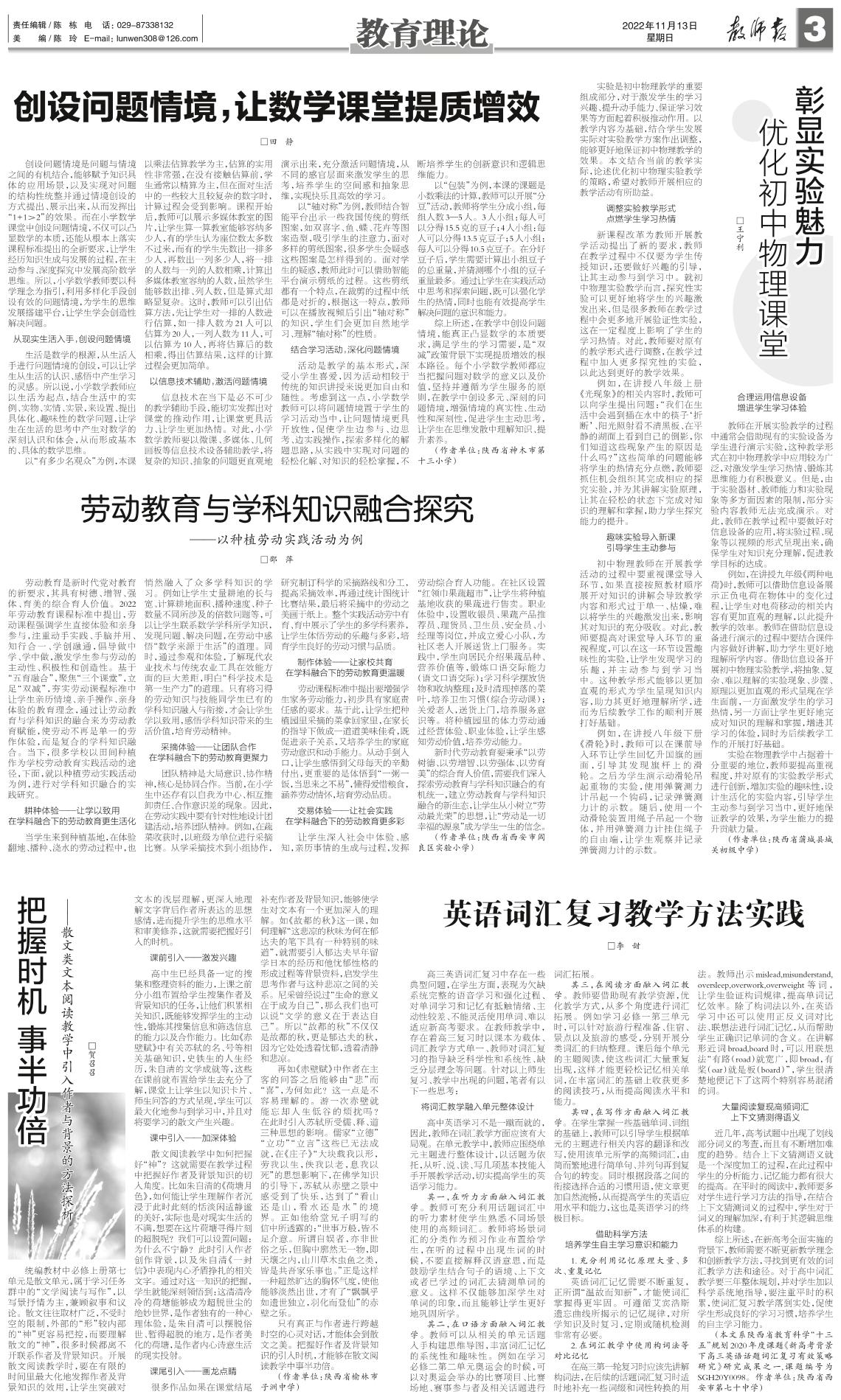 劳动教育与学科知识融合探究