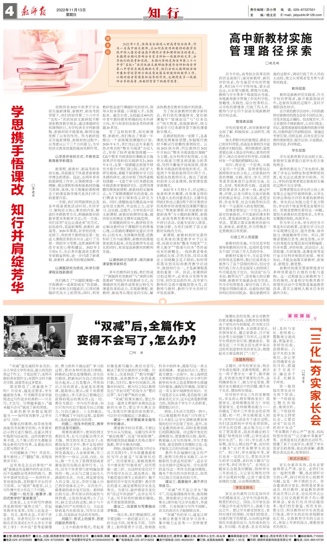 高中新教材实施 管理路径探索