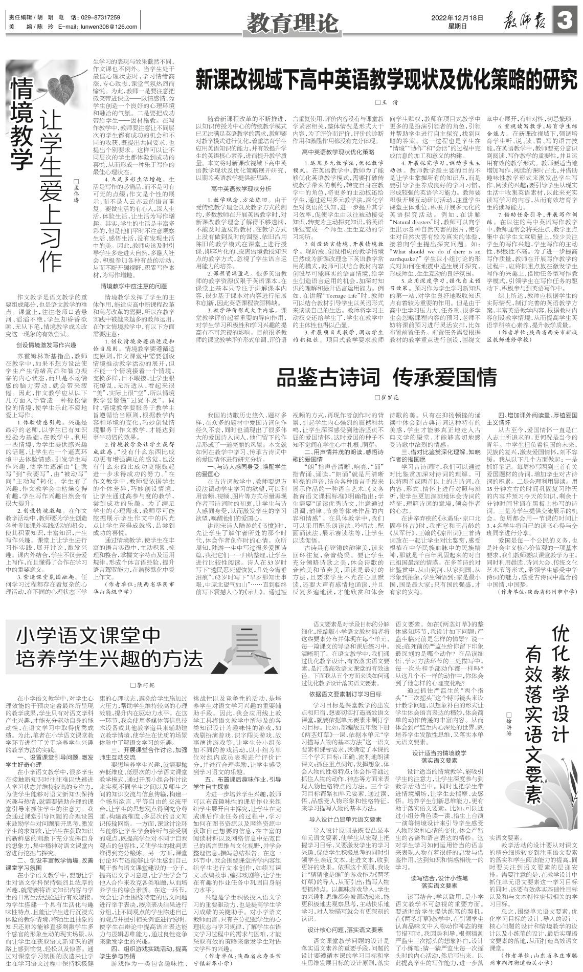 新课改视域下高中英语教学现状及优化策略的研究