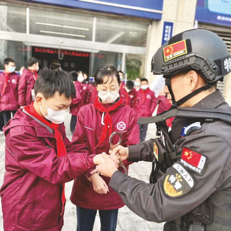 “谢谢警察叔叔为我们创造的这次机会,在以后的生活中,我们要加强自我保护意识、提高安全法治意识。在此,我代表同学们向警察叔叔们表达深深的敬意和诚挚的感谢。”警营研学结束,西安国际港务区陆港初级中学七年级3班学生何诗嘉感触满满地说道。