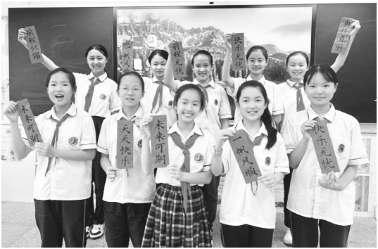 知己相伴,成就梦想。大学时,我因书法特长,多次入选不同的支教团队,先后支教青海湟源、河南南阳等地。如今,梦想照进现实,我终于从支教志愿者转变成为在职教师!“三笔一画”是我每日必做的功课,努力提升自己,关注学生,与学生交朋友,与我的“知己”一同给学生带去温暖、快乐与期待。虽然我是一名英语教师,但在要求学生写好中国字上也绝不含糊。在我看来,写好中国字是习惯、是信仰,更是对中华优秀传统文化的继承与发展。在教学Unit8NewYear’sParty这一单元中,我特意将写对联、写福字等中华优秀传统文化融入教学中。课堂上,我边用英语讲解“福”字的意义,边示范欧体“福”字的写法。学生们听得入神,随后也饶有兴趣地写起来,体悟中华优秀传统文化的博大精深,英语课堂也愈发有意义。时光的列车驶入六月,毕业如期而至,我利用课余时间为每一位学生书写祝福。当我把满载祝福的四字寄语送给孩子们的时候,他们的眼里充满了光。我想那道光会常驻孩子们的心间,温暖他们、陪伴他们,照亮他们逐梦的路途;同样的,那道光也将指引我成为更温暖的陪伴者与更好的自己。