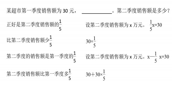 此类习题使学生能在更大的背景中基于分数乘法的意义分析数量关系,避免学生依靠题目中的某些词语盲目选择算法,而是通过整体分析题意找出数量关系,明确本质,解决问题。