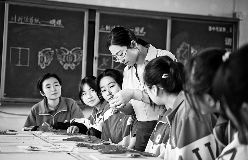 小慧(化名)同学贪玩好动,抱着好玩的心态加入了学校剪纸社团。没想到,几堂课下来,杨燕燕剪刀下一幅幅活灵活现的剪纸作品,深深吸引了她。她下定决心跟杨老师好好学习剪纸。可是,灵活运用剪刀剪出一幅像样的作品不是一件容易的事。在杨燕燕耐心的讲解和手把手指导下,小慧的剪纸作品越来越像样了,甚至被挂到了女生宿舍艺术走廊上展览。在剪纸方面的进步,鼓舞了小慧。课堂上,她能静心听讲了,学习成绩也有了明显提升,教室黑板报的插图几乎成了她的“个人展示区”,被同学们称为“黑板报插图小达人”。