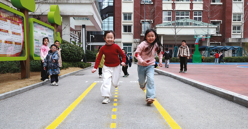 每到课间,延安枣园小学“五彩斑斓的跑道”就格外热闹:跑步的、跳绳的、做游戏的、散步聊天的……学校精心打造的跑道成了学生们在课间15分钟释放活力、展现个性的乐园。该校有关负责人表示,设置这条跑道不仅为了美化校园环境,更为了鼓励学生课间走出教室参与锻炼,减少“小眼镜”“小胖墩”。