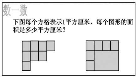 师:这些小面在数学上就叫做测量单位。图中有多少个这样的单位,图形的面积就有多大。
