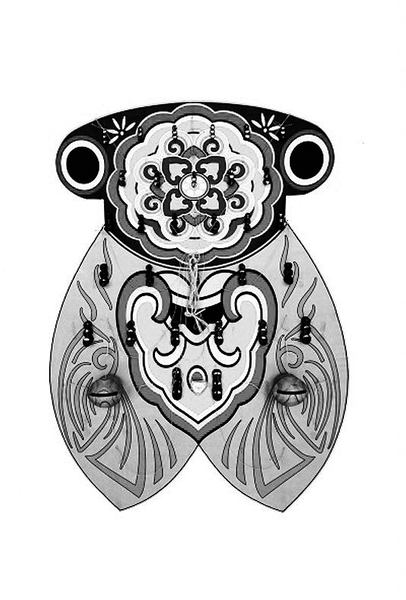 过去,人们常在风筝上贴饰神马或描绘神像,希望通过放飞风筝来消灾降福。风筝的彩绘图案丰富多样,皆蕴含着吉祥美满的寓意,题材包括福禄寿三星、八仙过海、嫦娥奔月等,还有二龙戏珠、凤戏牡丹、瑞狮如意、八宝如意、仙鹤、蝉、云纹、脸谱等图案。这些图案不仅展现了南通人民对美好生活的向往,也体现了中国传统民俗文化的深厚底蕴。南通板鹞风筝的图案主要以工笔重彩技法绘制而成,多采用红、黄、黑、青、紫等饱和度高的色彩,色调鲜艳且对比强烈。这些色彩契合了中国传统审美观念中的五行学说与色彩理论,给人以强烈的视觉冲击力与艺术感染力。尤其是风筝升空后,在蓝天白云的映衬下,彩绘图案显得愈加生动而富有活力。