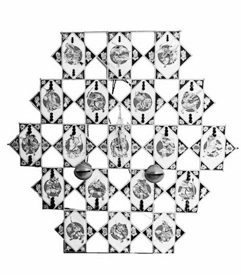 清朝道光年间诗人姜长卿在其所作《崇川竹枝词》中注解:“风筝大如风帆,其声彻云如胡笳。”这反映出当时南通风筝的重要特征:大如风帆,装有响哨,声震云霄,音若胡笳。如今南通板鹞风筝仍保留这些特点。板鹞风筝造型硕大无比、平整如板,通过组合变化可构成串联星式风筝。由于主要由单一的几何图形构成,其造型相较于其他地方的风筝显得更为简朴,这也成为南通板鹞风筝鲜明的外形特征。板鹞风筝不像造型风筝一样模拟人物、动物、花草等形态,而是多由六角形或八角形的几何图形为基本单元,通过数个几何图形组合成串联式板鹞。这种组合后的整体图形符合平面构成中的“重复构成”形式,在同一视觉空间中,通过单元的反复排列构成一组完整的图案。