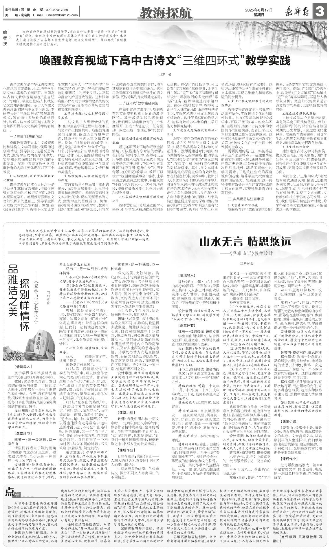 唤醒教育视域下高中古诗文“三维四环式”教学实践