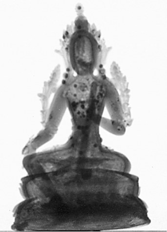 清代铜鎏金绿度母像中子投影图
