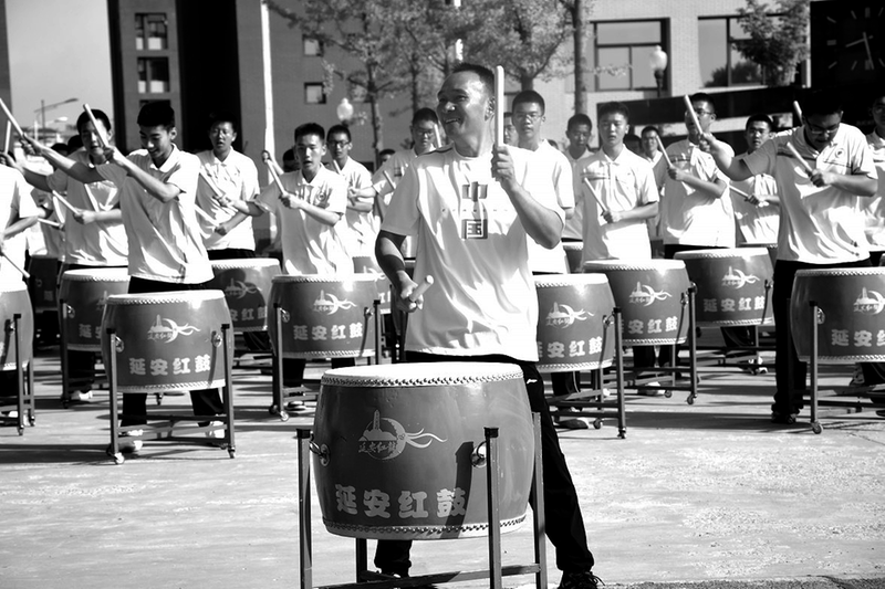 王东红和学生一起打延安红鼓