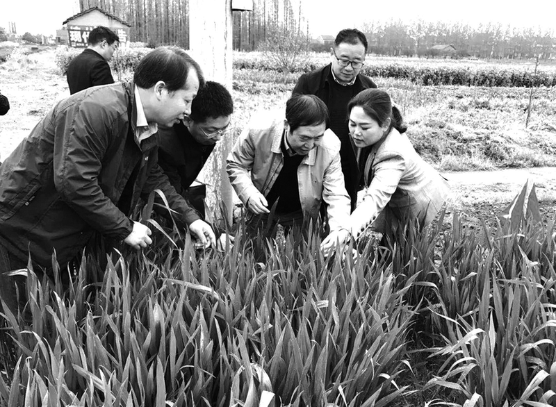 康振生院士(右三)与团队成员对湖北省荆州市荆州区的小麦条锈病发生情况进行实地调研