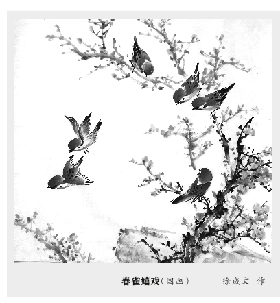 春雀嬉戏(国画)